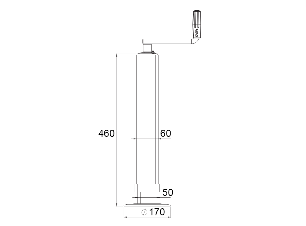 Резбовата подпорна стойка е проектирана да осигури стабилна и сигурна опора за ремаркета. Тя позволява лесно ръчно регулиране на височината чрез завъртане на резбовия механизъм, осигурявайки прецизно адаптиране към повърхността на земята и експлоатационните изисквания.