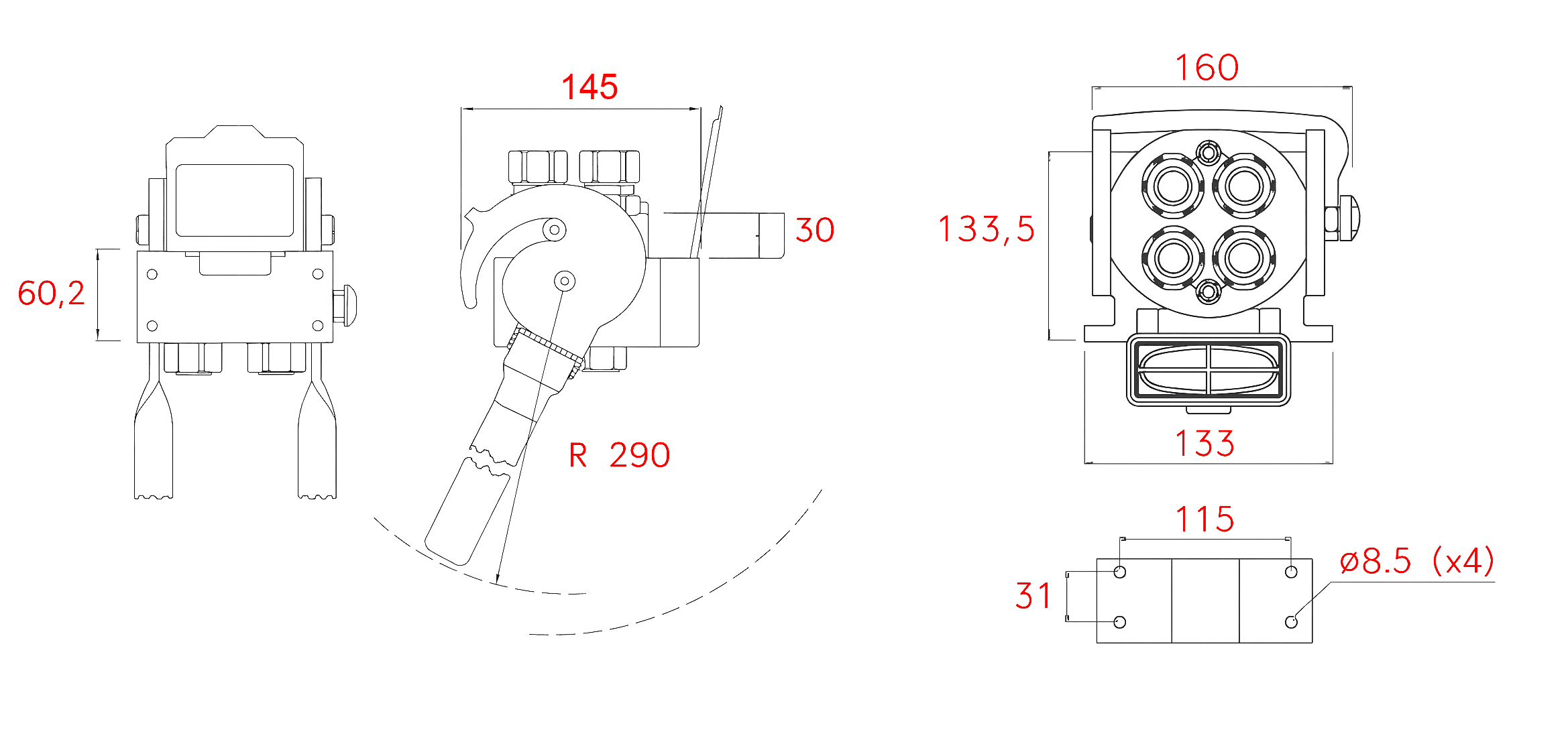 - Landbrugs-, bygge- og skovbrugsmaskiner: til tilslutning af arbejdsredskaber (f.eks. plove, hydrauliske arme, tænger …), der kræver flere hydrauliske ledninger.