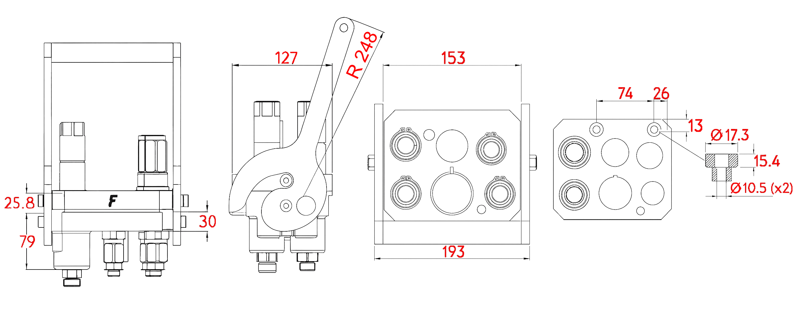 - Maatalous-, rakennus- ja metsäkoneet: työvälineiden (esim. aurat, hydrauliset varret, puristimet …) liittämiseen, jotka vaativat useita hydraulisia linjoja.