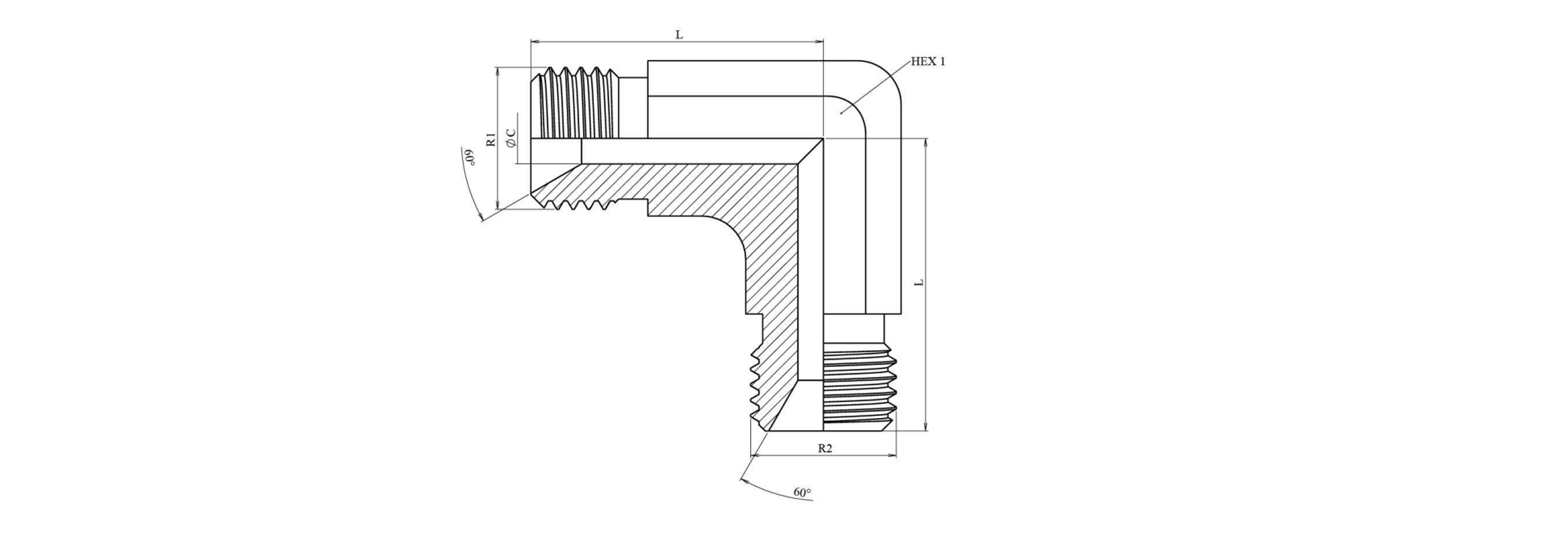 HYDRAULIC ŁUK 90° BSP KRÓTKI MĘSKI-MĘSKI 1/4